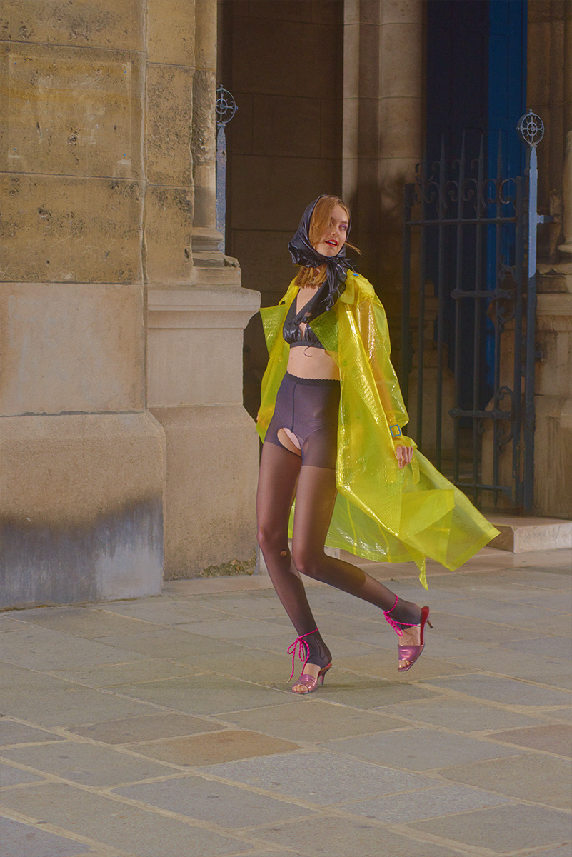 DRAG AND DROP is set to dismantle stereotypes of Eastern European women and challenge the representation of female sexuality in fashion. They use materials often associated with bad taste and trashy sex appeal – such as snakeskin, lace and PU leather – in designs which were not just ironic, but also comfortable and liberating for the body.